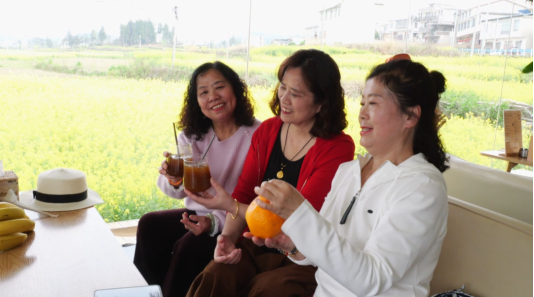 游客胡女士:“诸沃之野特别适合周末的时候和家人、朋友、闺蜜来看看油菜花,然后喝喝咖啡、看看书、发发呆。”