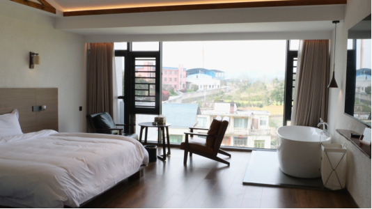 在旧州镇邢江村,另一种咖啡体验正静待游人。该地的碧萃禾风民宿以独特的稻田景观与沉浸式乡村体验,成为游客追寻田园诗意生活的热门目的地。推窗即景的居住环境令人心旷神怡。午后的咖啡厅里,游客正享受着悠闲的田园时光,一边欣赏着远处的风景,一边品尝着民宿现磨的咖啡。