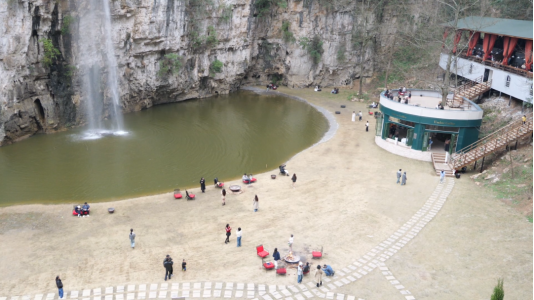 走进营地,天然的喀斯特溶洞与倾泻而下的崖壁瀑布相映成趣。洞穴内,咖啡醇香弥漫,音乐舒缓缭绕;洞穴外,游客们沿着瀑布景观步道缓步游览,沉浸于山野间的美景。天然溶洞的独特肌理与精心布置的休闲空间交相辉映,飞瀑流水的叮咚声与游人的欢声笑语交织共鸣,独特的体验让前来打卡的游客们纷纷赞不绝口。